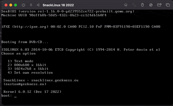 SnackLinux runs on i486 and aarch64